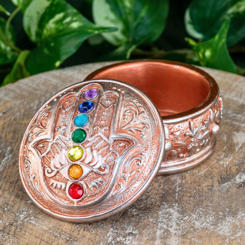 Hamsa Hand Box with Chakra Stones