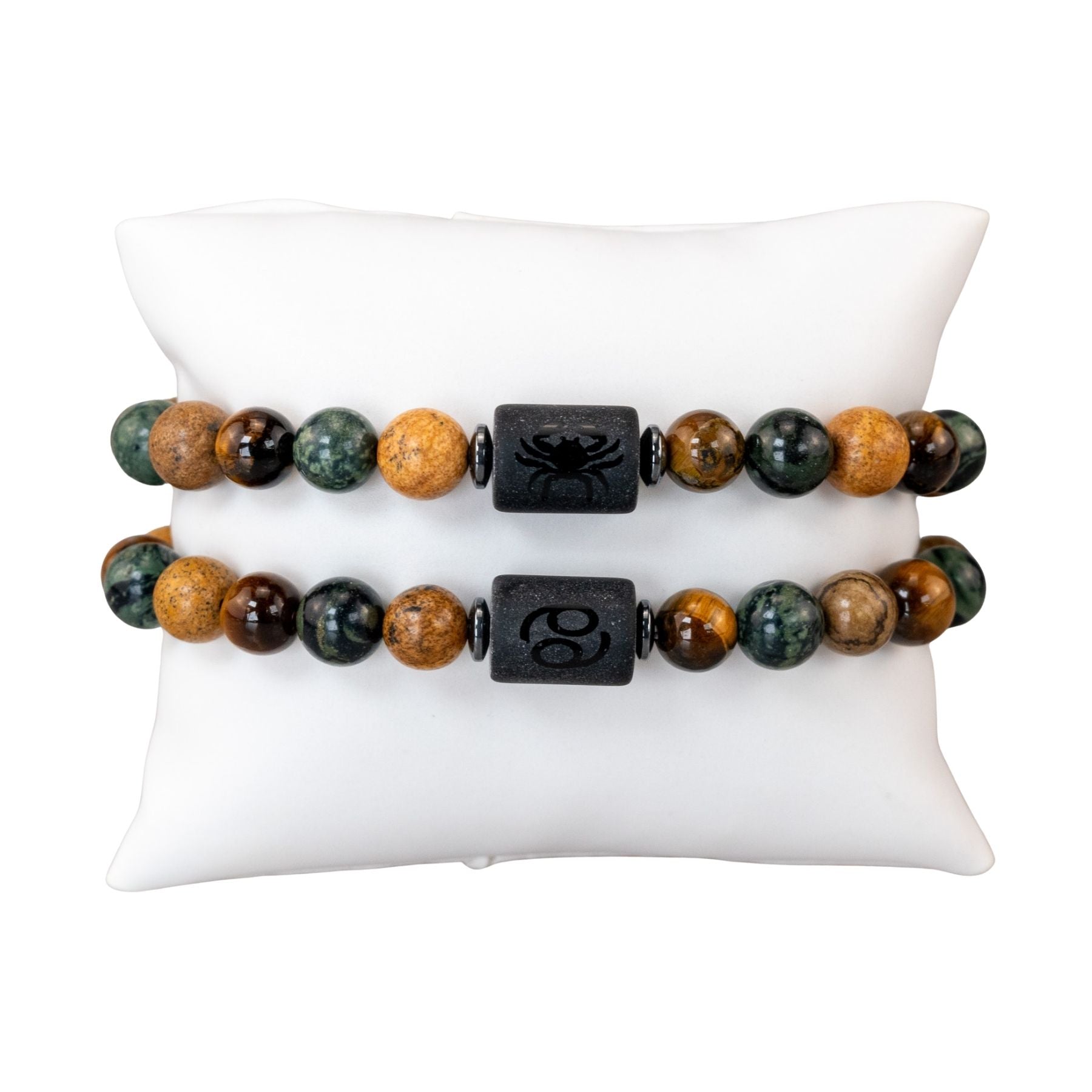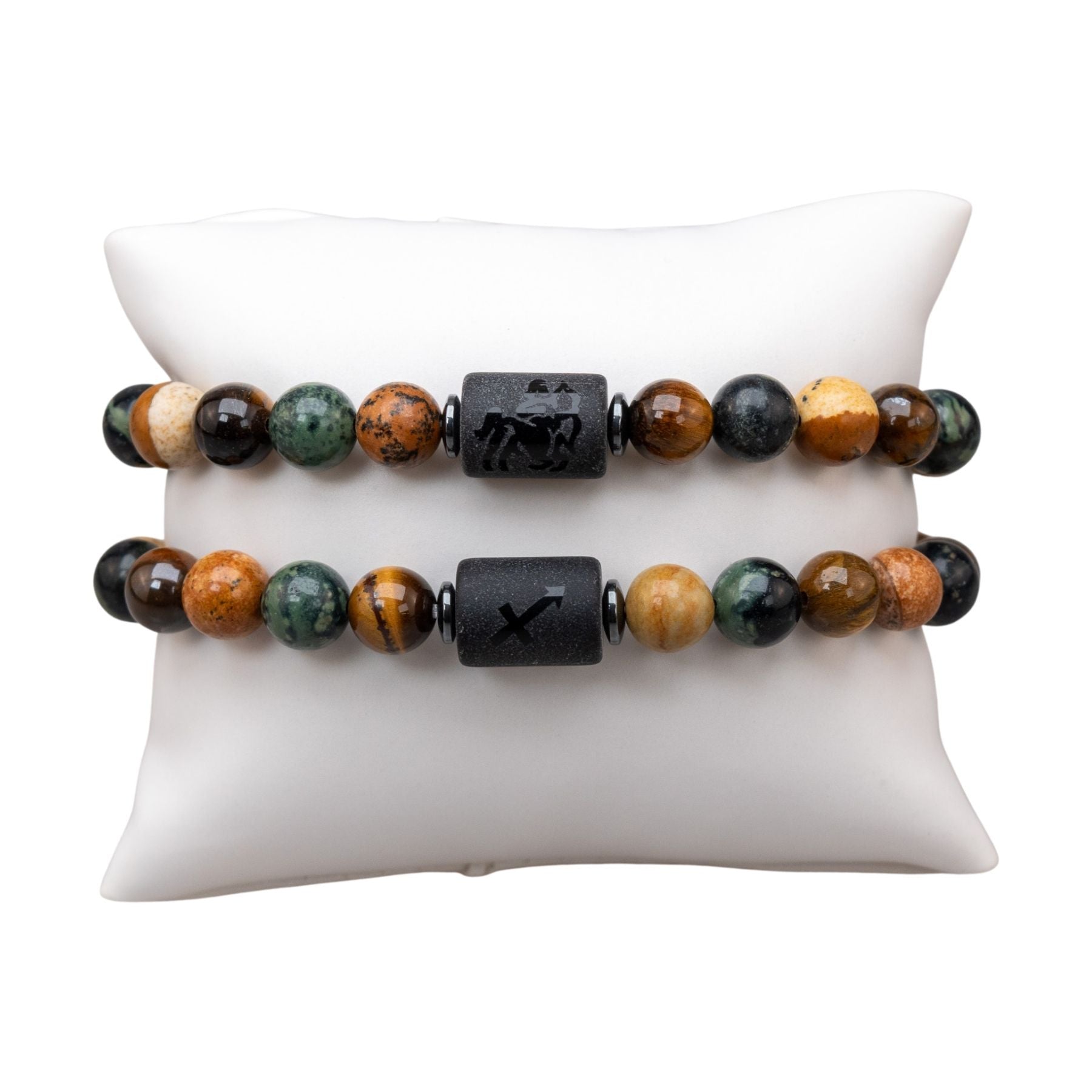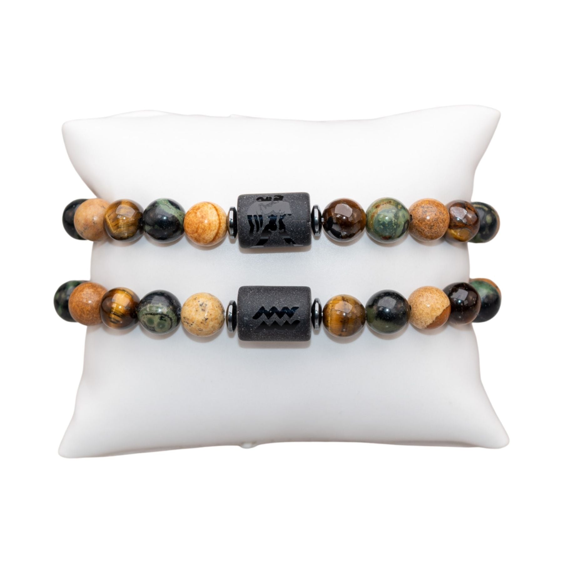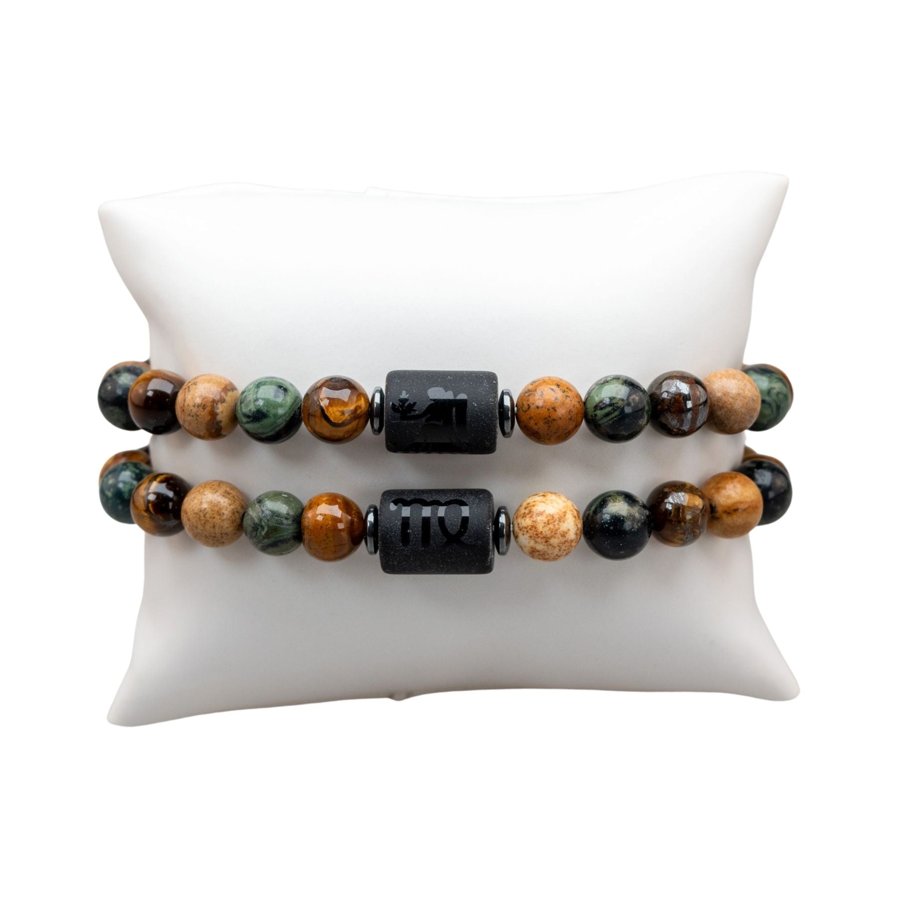 Each piece features your zodiac symbol alongside its corresponding spirit animal, engraved on a sleek centerpiece bead. Thoughtfully designed with a curated mix of 8mm natural stone beads, these bracelets blend meaning, personality, and earthy elegance into one wearable statement.