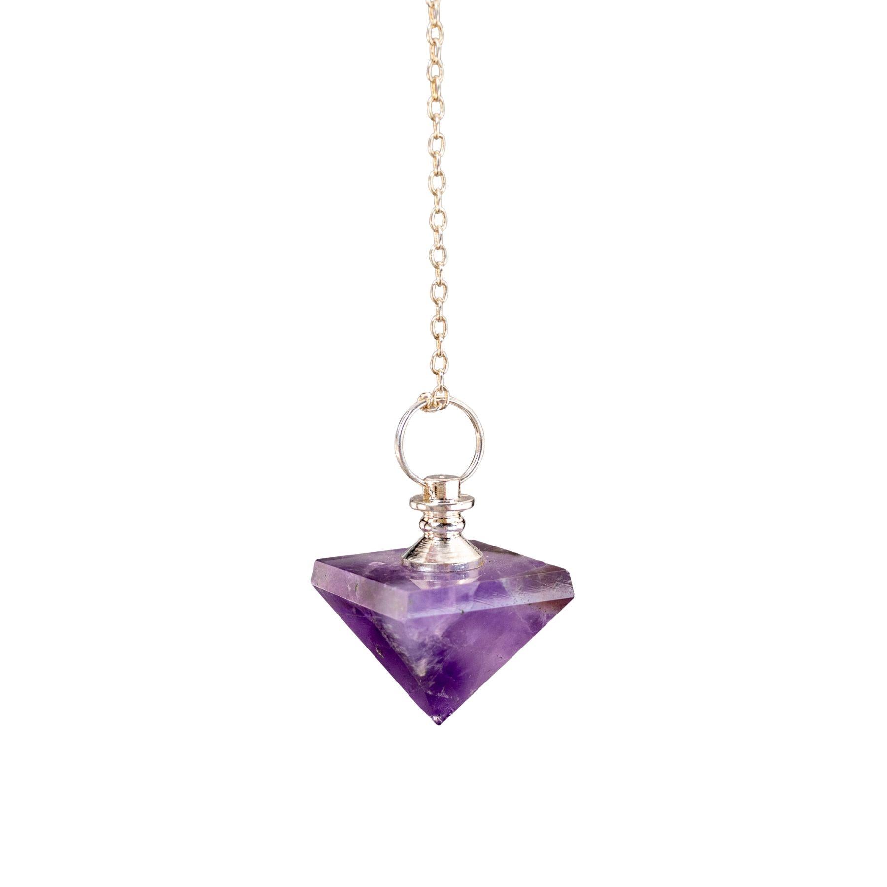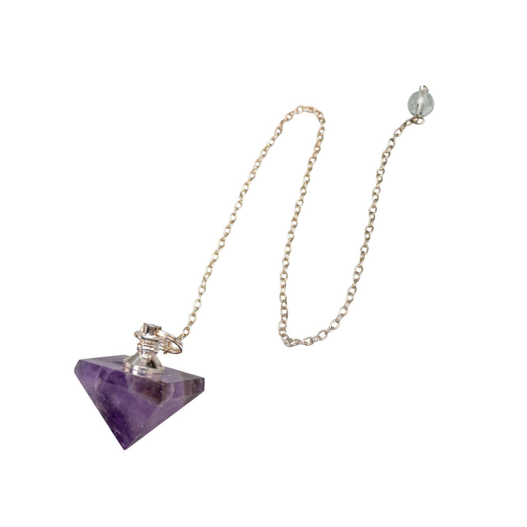 Tap into your intuition and higher wisdom with this stunning Amethyst Pyramid Pendulum. Crafted from genuine amethyst, this pendulum features a pyramid-shaped crystal that enhances focus and clarity during divination, chakra alignment, or meditation practices. Its polished point and balanced weight make it an ideal tool for precise energy readings and spiritual guidance.