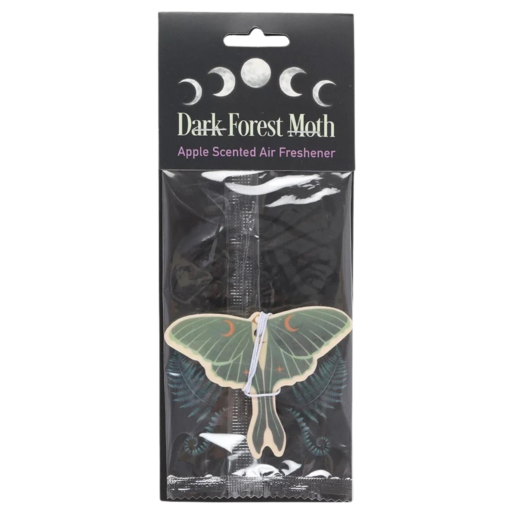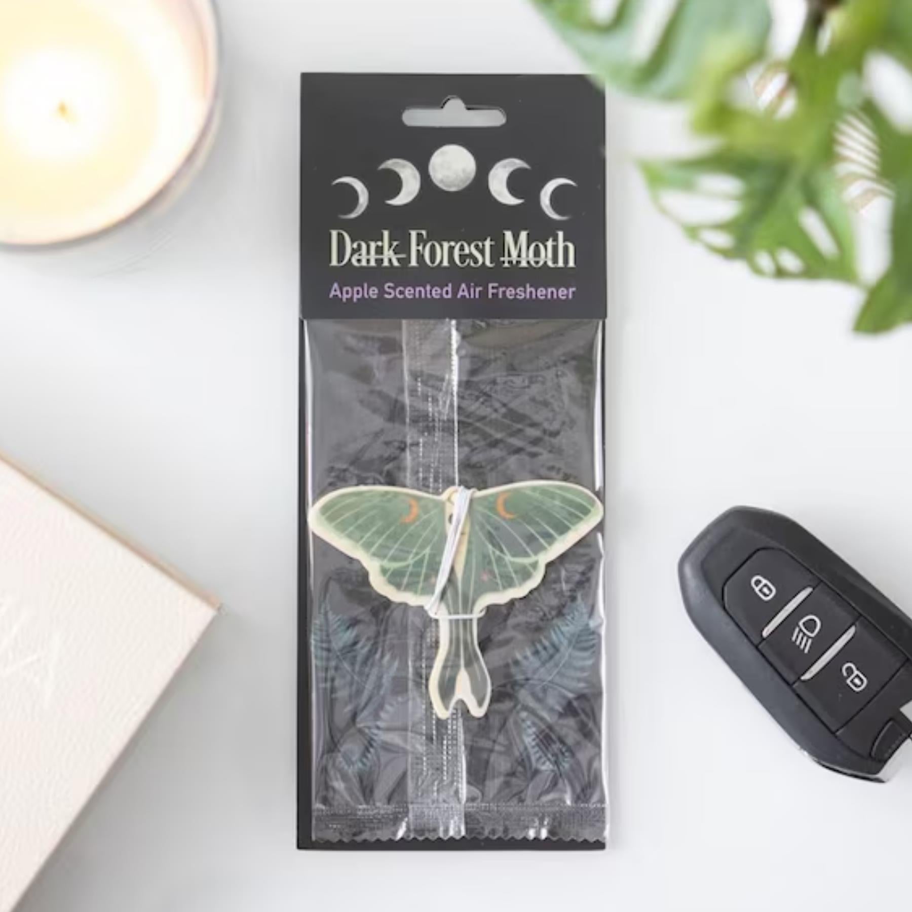 Add a touch of dark, mystical charm to your space with the Apple Dark Forest Moth Air Freshener. Featuring an enchanting forest moth design accented with crescent moons and subtle celestial details, this hanging air freshener blends earthy aesthetics with a crisp apple fragrance. The fresh apple scent delivers a clean, lightly sweet aroma that refreshes your car, office, or home without being overpowering. Complete with an attached string for easy hanging, this air freshener is perfect for anyone drawn to woodland vibes, lunar symbolism, and gothic-inspired décor while keeping their space smelling bright and inviting.