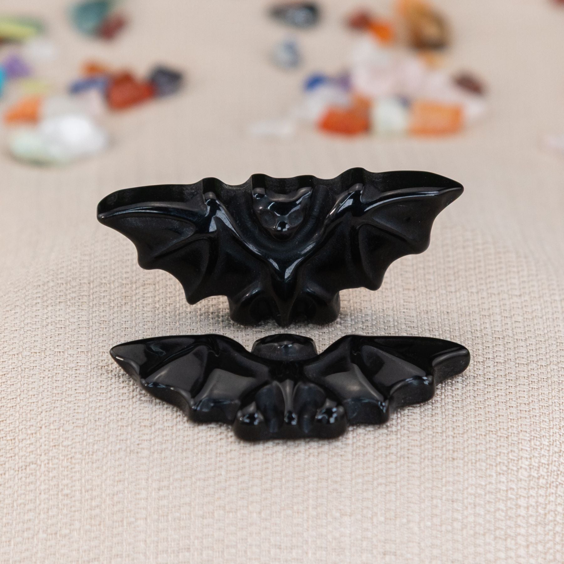 Crafted from genuine black obsidian, this intricately carved bat fits snugly in the palm of your hand, emanating an aura of ancient allure. With its sleek design and smooth finish, it's a perfect companion for meditation, spiritual practices, or simply as a captivating decorative piece. Let its energy guide you through the night, symbolizing protection, intuition, and inner strength. Elevate your space with this enchanting talisman, as it adds a touch of enigmatic beauty to any collection.