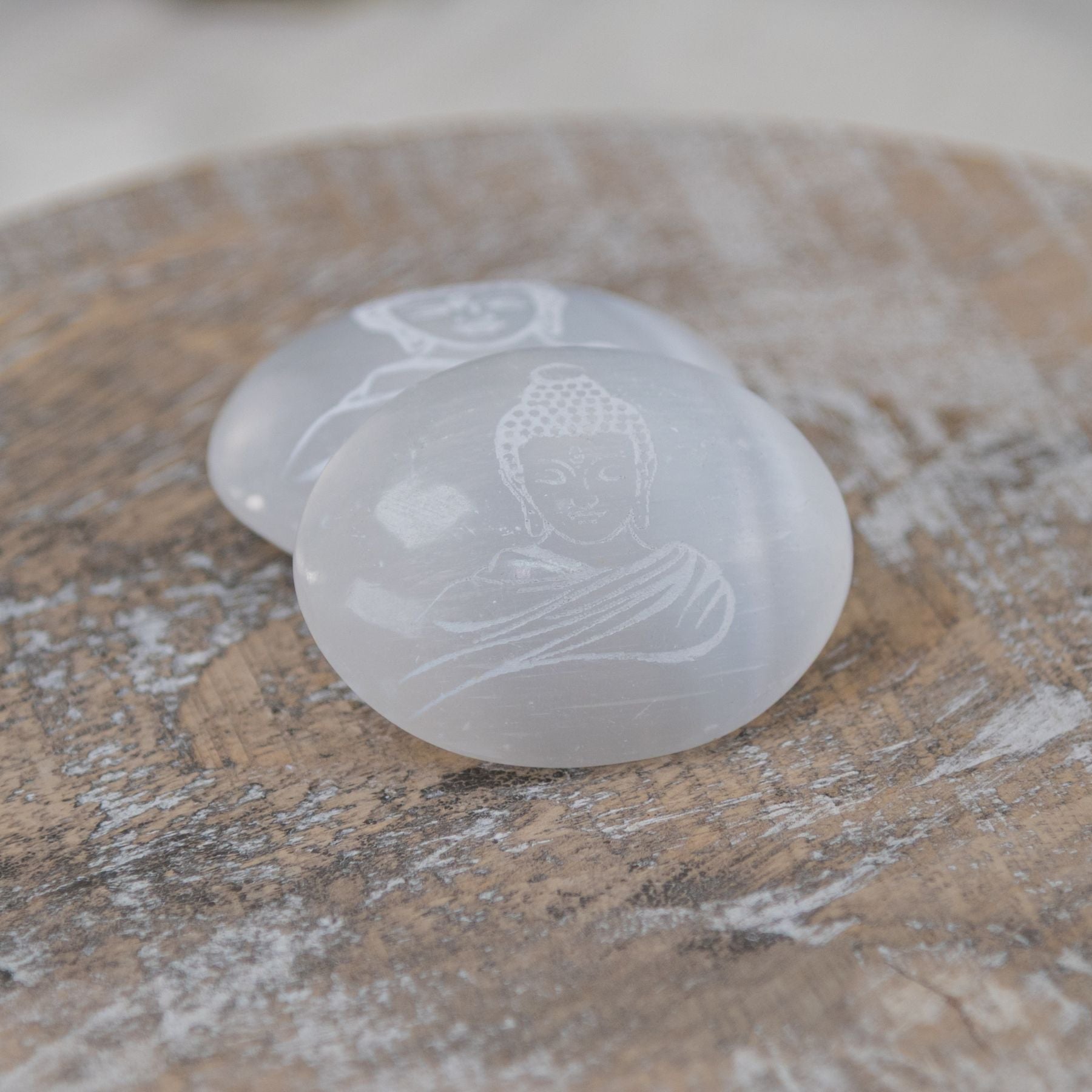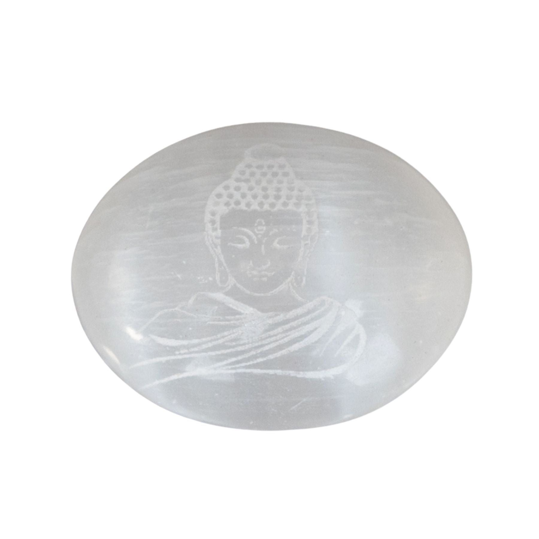 This peaceful selenite palm stone features an engraved Buddha, symbolizing enlightenment and inner peace. Selenite is a high-vibrational crystal that cleanses the aura and uplifts the spirit, perfect for meditation, energy work, or simply keeping calm throughout the day.