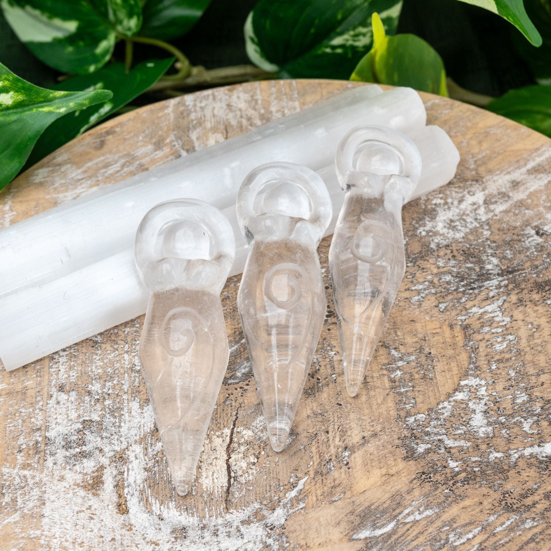 Infuse your surroundings and sacred self-care routines with the essence of the Divine Feminine by incorporating one of these beautifully hand-carved Crystal Goddesses. These figurines showcase the Spiral of Life symbol etched onto their bellies, embodying feminine qualities like beauty, love, sensuality, motherhood, and fertility.
