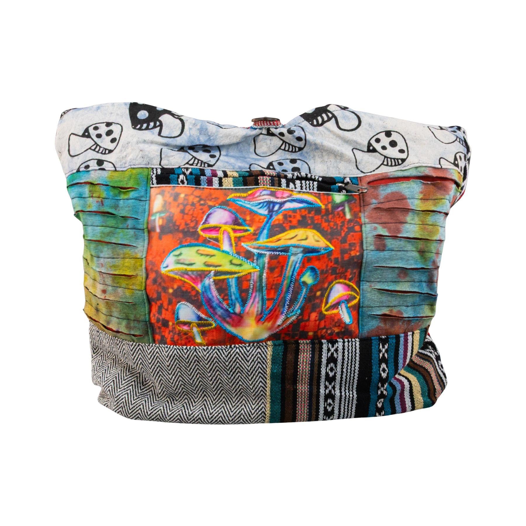 Handmade in Nepal from durable Himalayan hemp and cotton. The detailed mushroom pattern and bold tie-dye mushroom patch make every bag a one-of-a-kind piece. Designed for comfort and functionality, it features a roomy interior, secure closures, and an easy over-the-shoulder sling style, perfect for festivals, daily adventures, or casual outings.